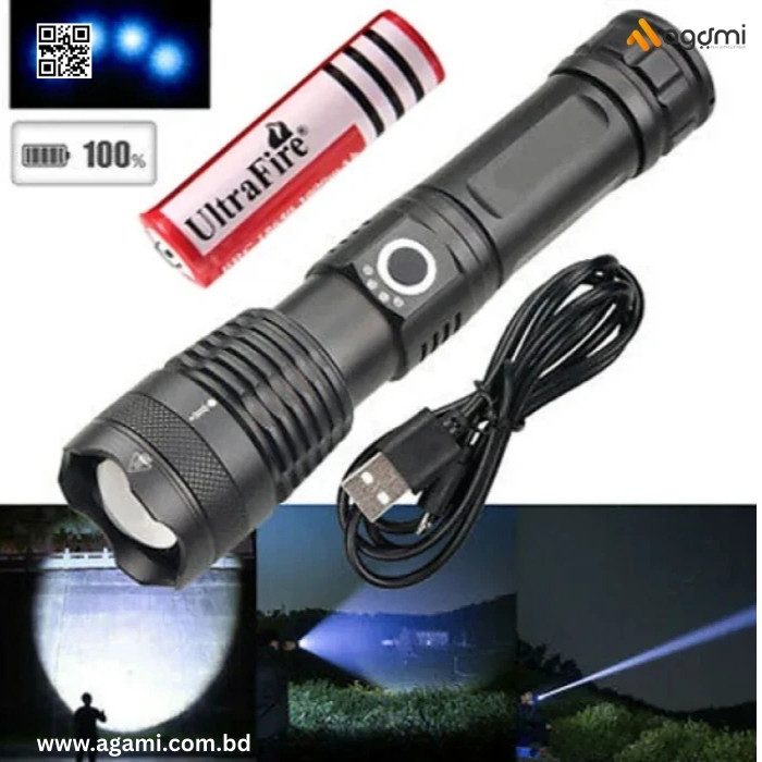 পরিসীমা: 300-500 মিটার• জুম মোড: টেলিস্কোপিক জুম• সুইচ মোড: 5 মোড (উচ্চ - মাঝারি - নিম্ন - SOS - ফ্ল্যাশ)• ব্যাটারির ধরন: 18650, 5500mAh, 3.7V li-ion• আলোর সময়: 2-6 ঘন্টা • ওয়াটারপ্রুফ লেভেল: IPX-6• শরীরের রঙ: কালো• উপাদান: T6063-T6 এভিয়েশন অ্যালুমিনিয়াম• সাইজ: 16.8cm * 4cm * 3.3cm• টর্চ নেট ওজন: 0.207kg• রিচার্জেবল: কম্পিউটার USB, কার USB, USB এর জন্য মাইক্রো USB চার্জিং প্লাগ এবং ব্যাটারি * আকার: 7.5" পণ্য বৈশিষ্ট্য